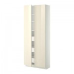 МЕТОД / МАКСИМЕРА Высокий шкаф с ящиками/2 дверцы - Рингульт глянцевый кремовый, белый