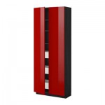 МЕТОД / МАКСИМЕРА Высокий шкаф с ящиками/2 дверцы - Рингульт глянцевый красный, под дерево черный